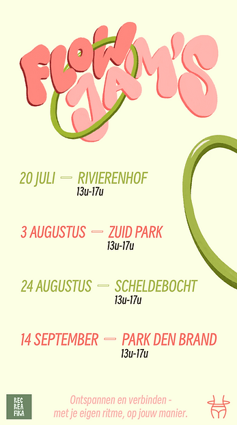 DIT PROJECT HEB IK SAMEN MET HOOPITOUT GESTART UIT EEN GEDEELDE PASSIE VOOR DANS EN HOEPELEN. ONZE FLOW JAMS GINGEN DOOR TIJDENS DE ZOMER VAN 2025. ELKE MAAND KWAMEN WE SAMEN IN EEN PARK IN ANTWERPEN EN GENOTEN WE VAN HOEPELEN EN DANSEN IN DE NATUUR. HOU ZEKER DEZE PAGINA IN HET OOG VOOR DE FLOW JAMS IN 2026!